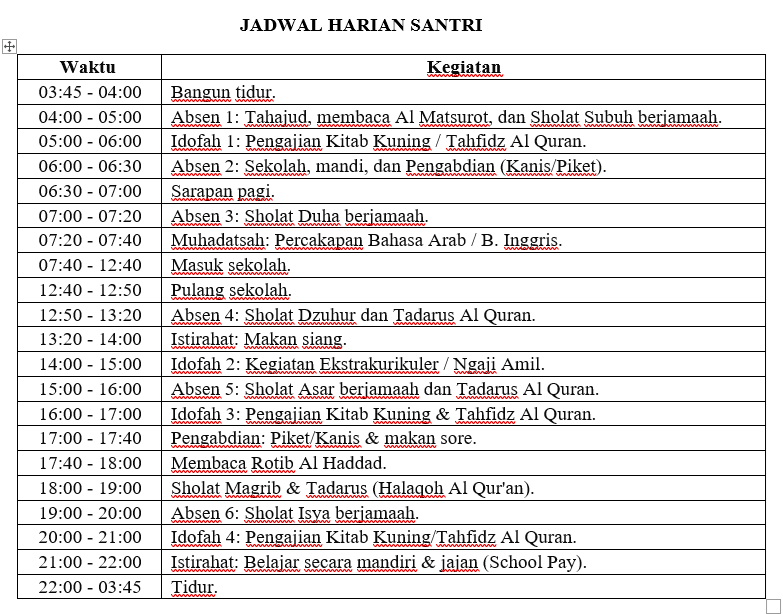 JADWAL MINGGUAN & BULANAN SANTRI PONDOK PESANTREN DAAR EL HASANAH