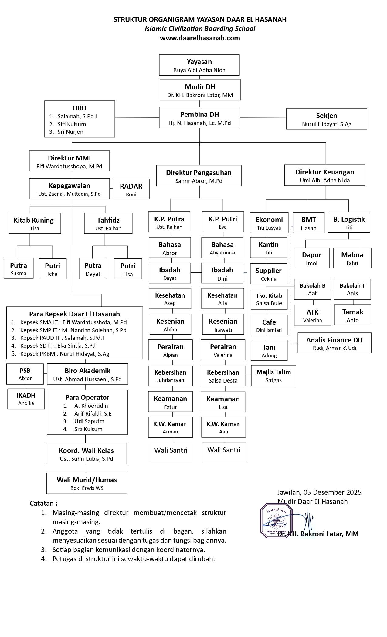 Struktur Organigram Daar El-Hasanah